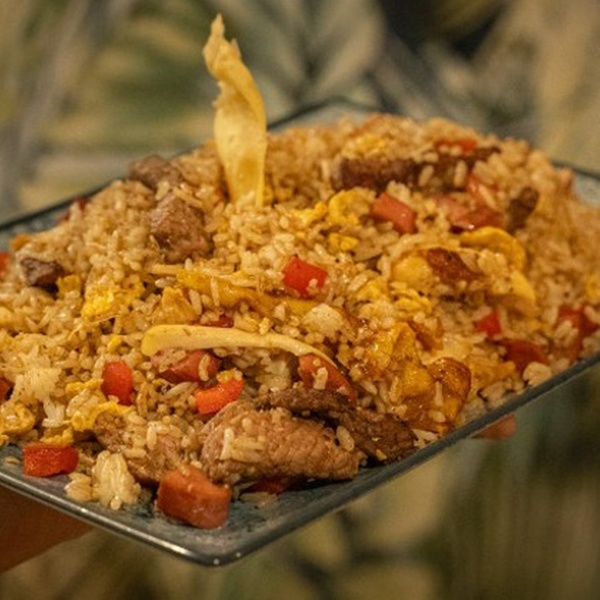 - Arroz Chaufa de Pollo: Arroz frito al wok en salsa de soja, jengibre, verduras chinas y trozos de pollo