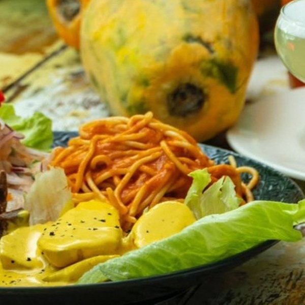 - Ají de Gallina: Pechuga de pollo desmenuzada en salsa cremosa a base de ají amarillo, leche y galletas, servido con patatas cocidas, huevo duro y arroz