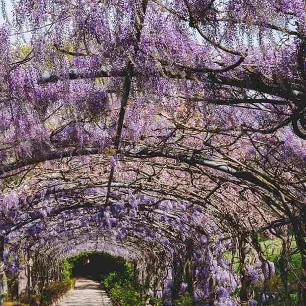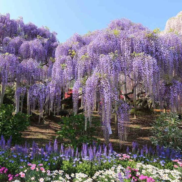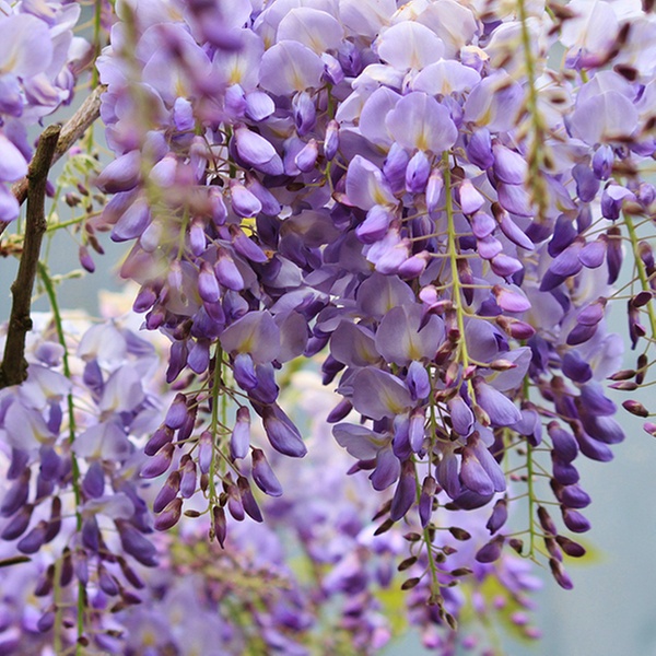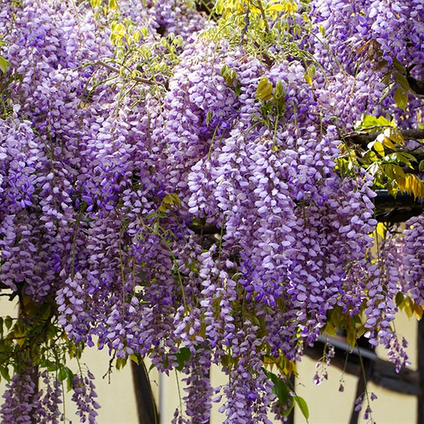 La wisteria es una planta trepadora de rápido crecimiento con hermosas flores azules que crecen colgando