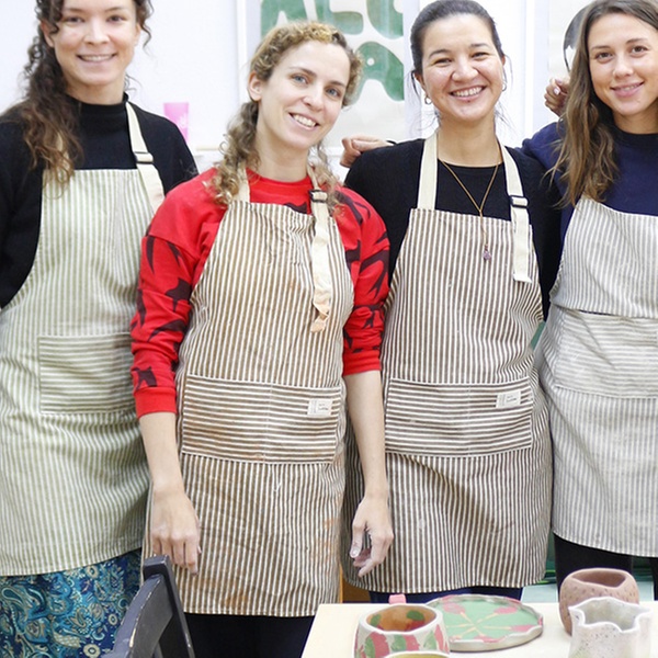 Todos los cursos comienzan con técnicas manuales básicas para modelar piezas y continúan con técnicas de decoración divertidas y versátiles. Se trabaja con arcilla sin torno, usando herramientas simples, en un espacio equipado con gran mesa de modelado, zona de amasado, zona de esmaltado y horno. Todo lo necesario está incluido: materiales, herramientas y cocciones.