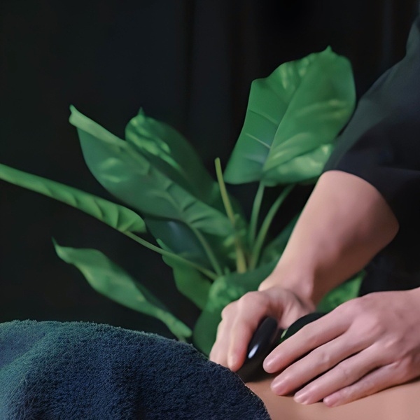 - Piedras calientes de basalto: colocadas estratégicamente para soltar tensiones y activar la circulación.