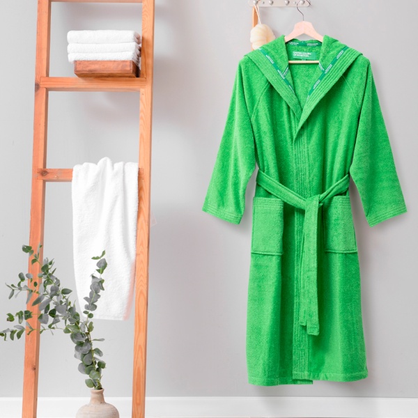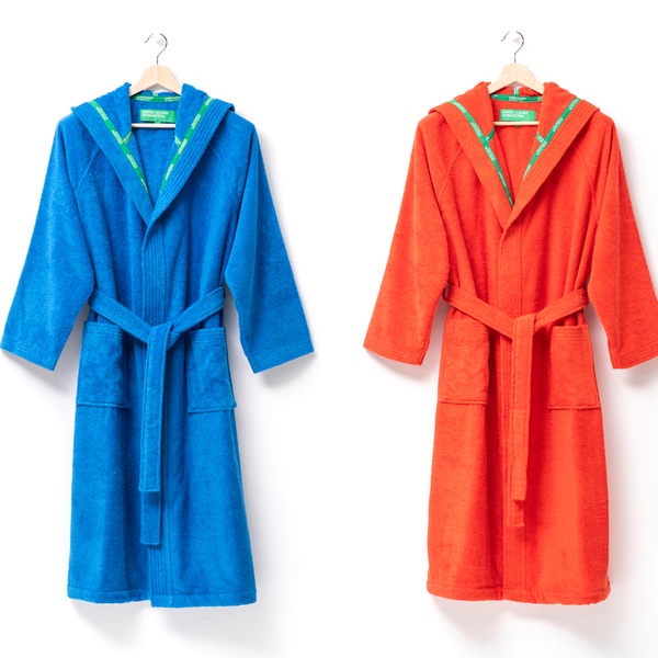 Albornoz Benetton ideal para usar al salir de la ducha o de la bañera, con unos colores vivos que pueden dar un toque diferente al baño