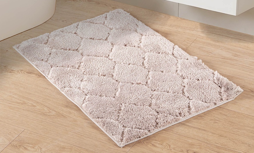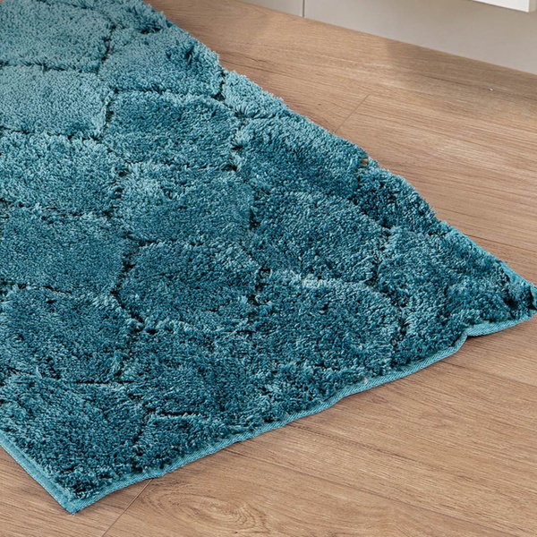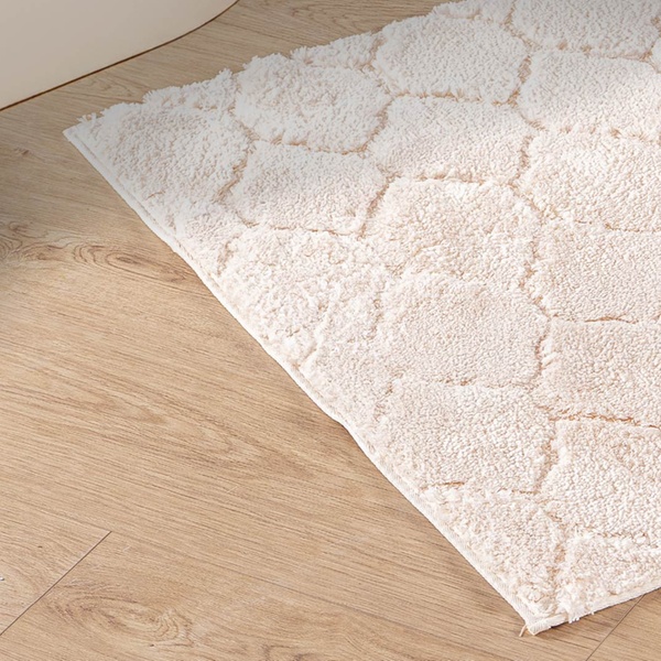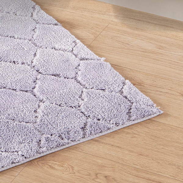 Hecho de poliéster suave, esta alfombra de baño brinda comodidad al salir de la ducha y añade un toque moderno a la decoración