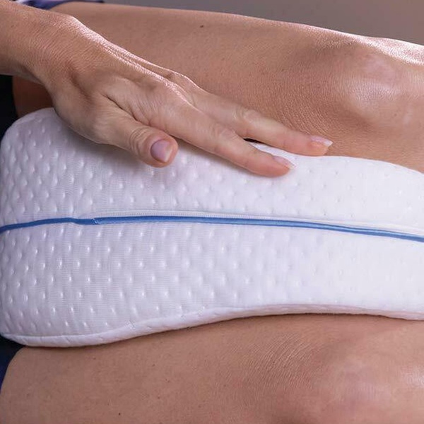 Esta almohada para piernas tiene un diseño ergonómico de suaves curvas y forma decreciente que se adapta a la anatomía del cuerpo