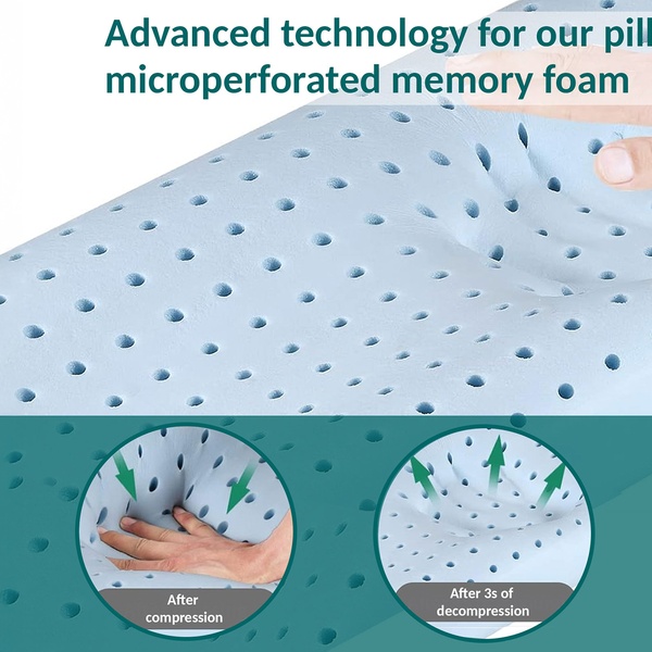 Almohada de espuma viscoelástica con funda refrescante de jacquard, perforada para mayor transpirabilidad, de Sampur