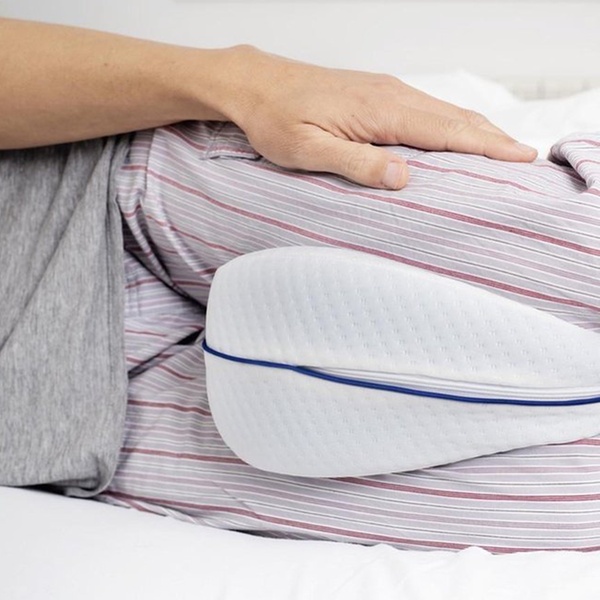 Esta almohada ergonómica de forma ovalada se ajusta entre las rodillas, proporcionando al cuerpo el apoyo necesario durante la noche