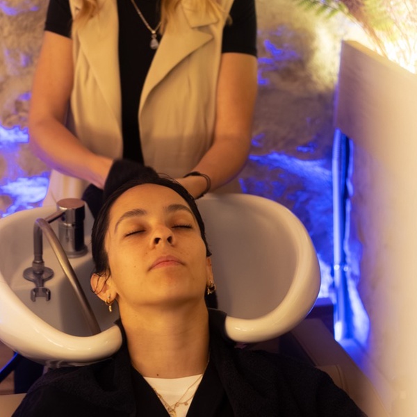 Ritual head spa con spa capilar, masaje de manos y bebida de cortesía en el centro âme beauty room Barcelona.