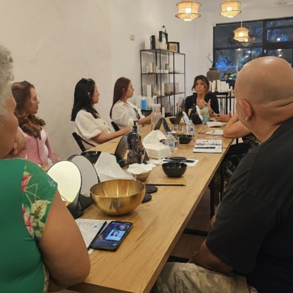 El taller incluye testeo de productos como sueros, cremas y tratamientos formulados para distintos tipos de piel, con orientación para identificar el más adecuado.