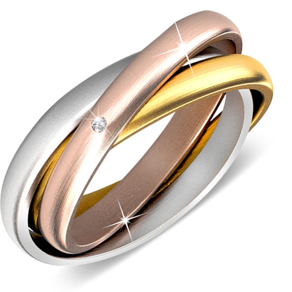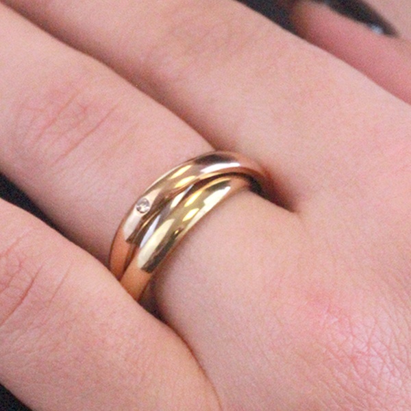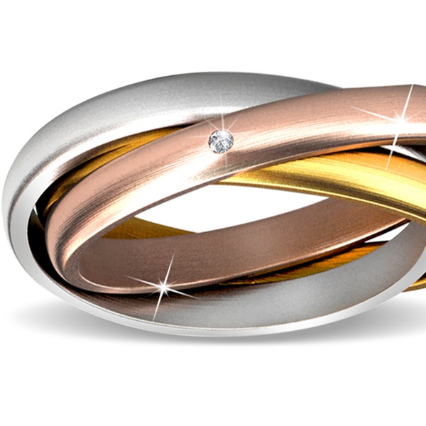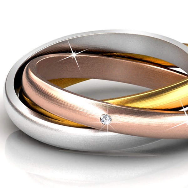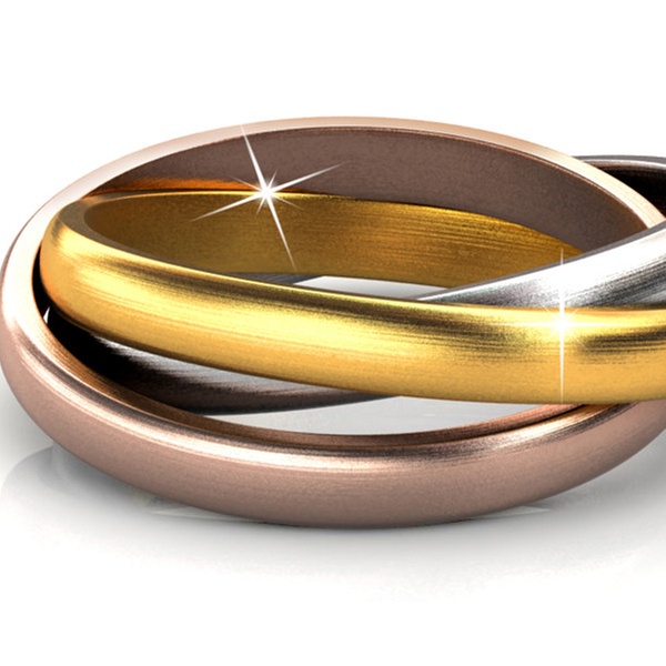 Groupon ofrece este anillo tres alianzas, vendido por MyCharms