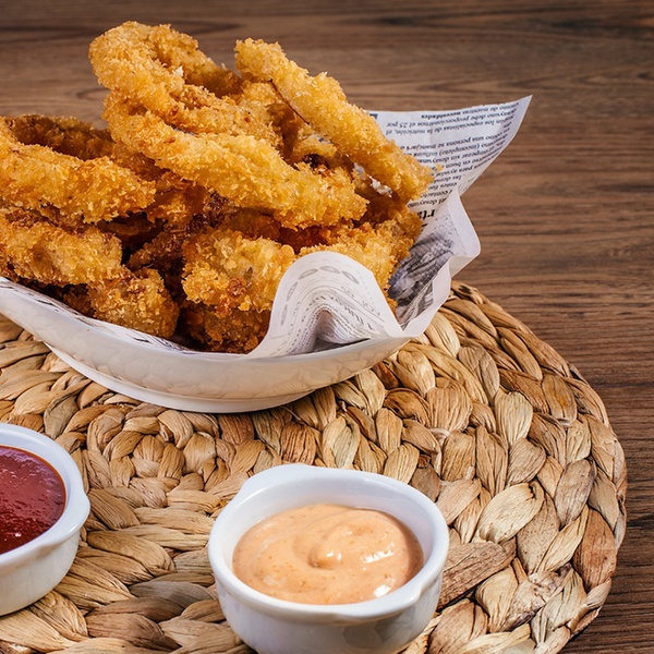 - Piña teriyaki: piña asada, cebolla morada, salsa teriyaki, queso emental, rúcula y salsas de mostaza y miel