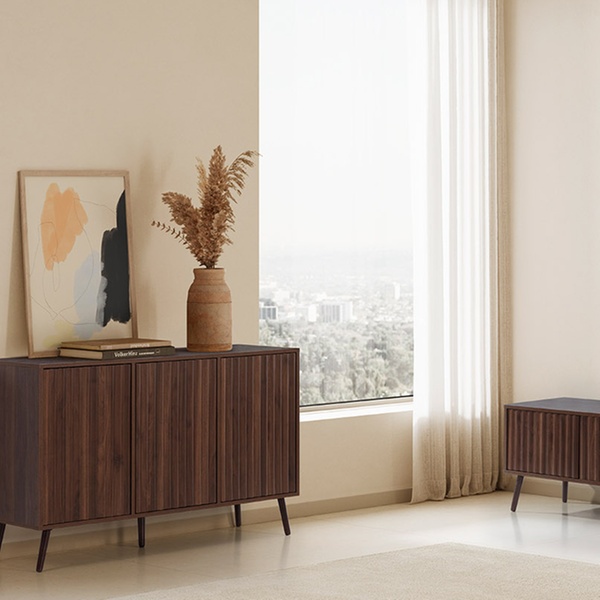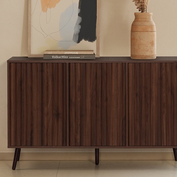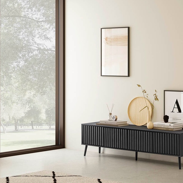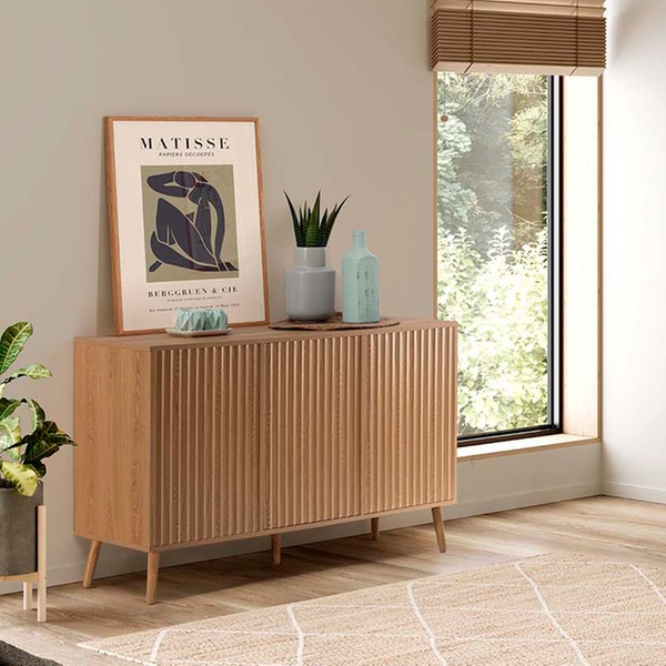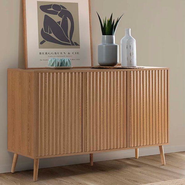 Este aparador combina diseño moderno y funcionalidad, ideal para realzar la decoración del salón-comedor con su elegante acabado acanalado