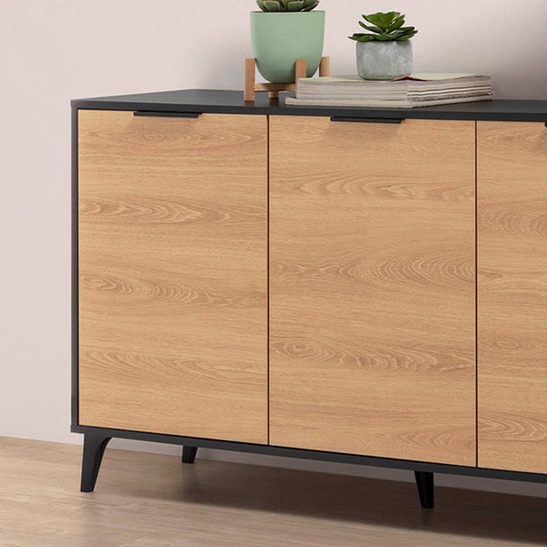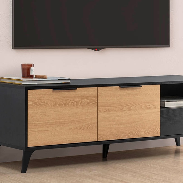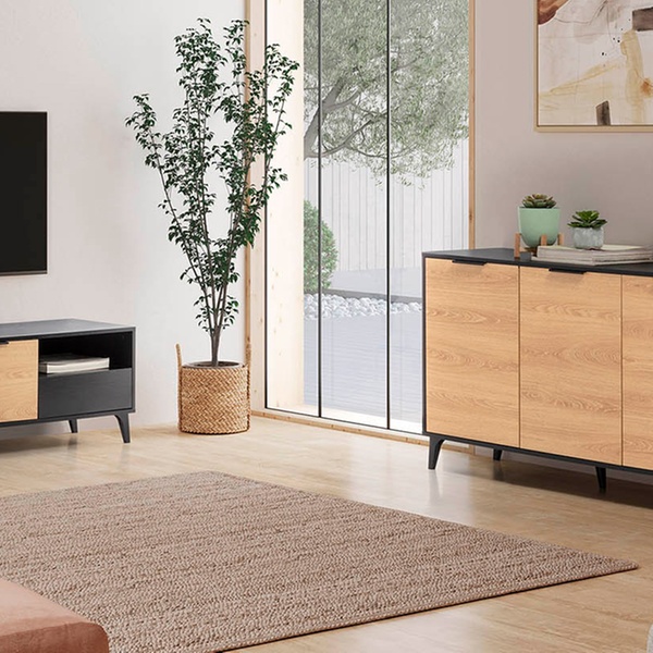 - Fabricado con melamina de 15mm en color Negro y Madera Natural