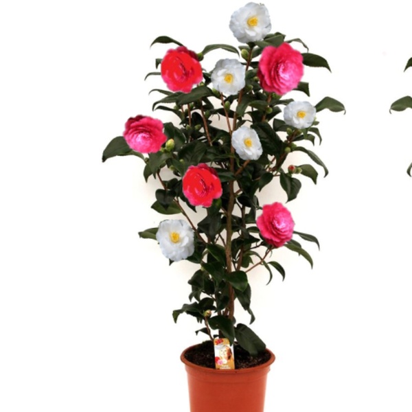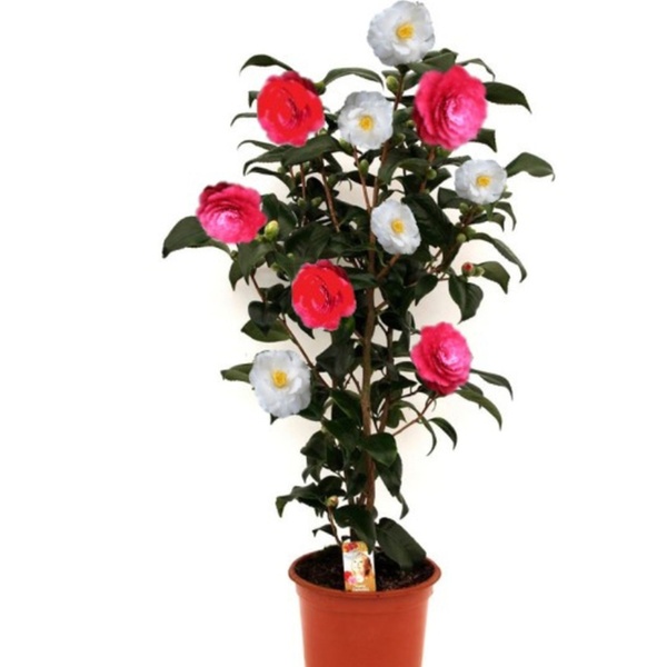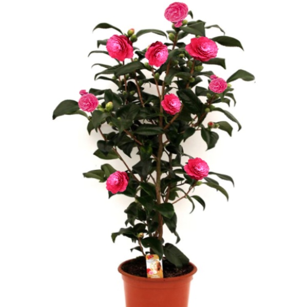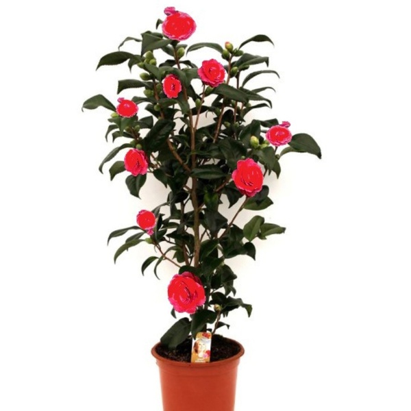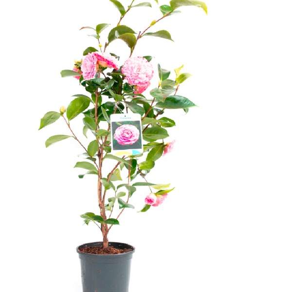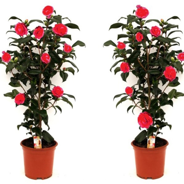 1 o 2 arbustos de camelia «rosa japonesa» con flores de color a elegir, entregados en embalaje elegante