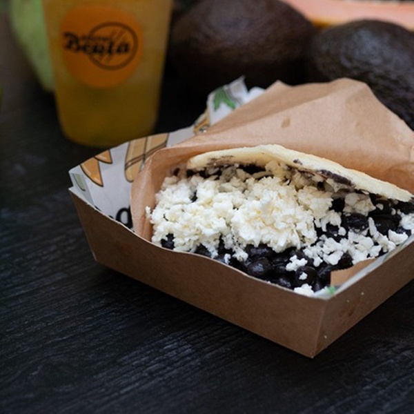 - Arepa de dominó: sabrosas y suaves caraotas negras guisadas, acompañada de queso llanero rayado.