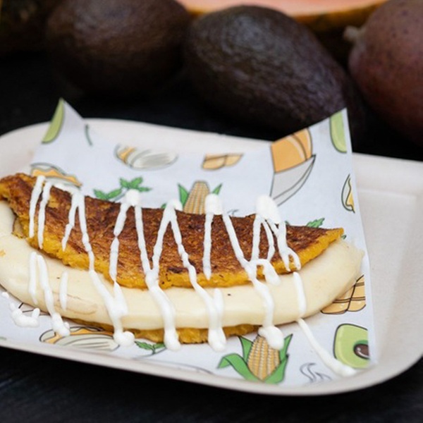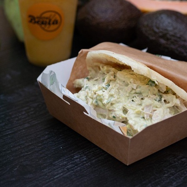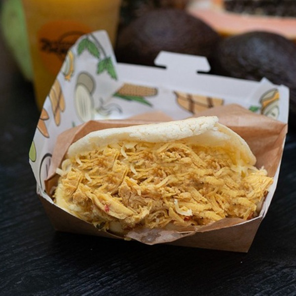 - Arepa reina pepiada: rellena de una mezcla cremosa de pollo desmenuzado, aguacate, mayonesa, cilantro fresco y lima.
