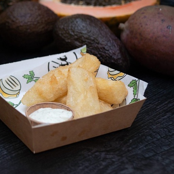- Yuca frita: ración de crocantes bastoncitos de yuca frita, acompañados de una deliciosa y cremosa salsa de ajo criolla. (Pregúntanos si eres Vegano o intolerante a la lactosa)