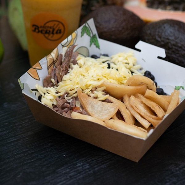 - Nacho arepa: mezcla crujiente y cremosa, con el sabor robusto de la carne deshilachada de ternera y la suavidad de las caraotas guisadas, coronadas con queso llanero venezolano