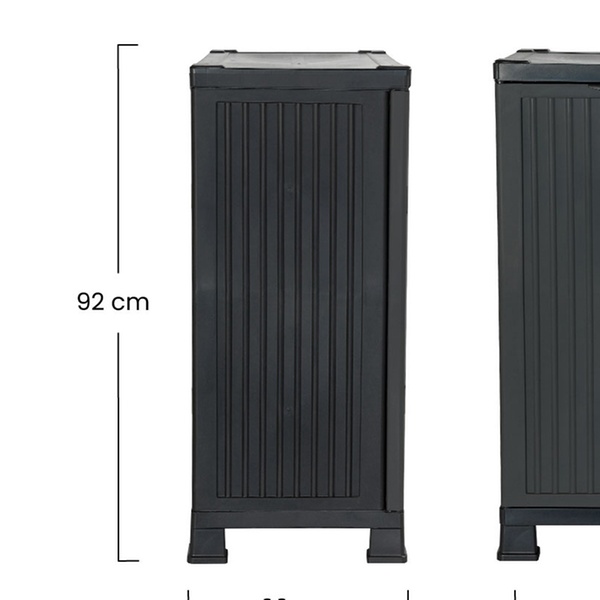 - Dividido en 3 baldas horizontales con 20 kg de carga máxima por nivel donde colocar productos de limpieza, recipientes o herramientas