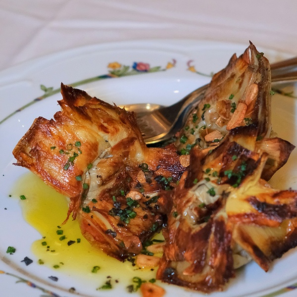- Flores de alcachofa confitadas en aove y a la parrilla