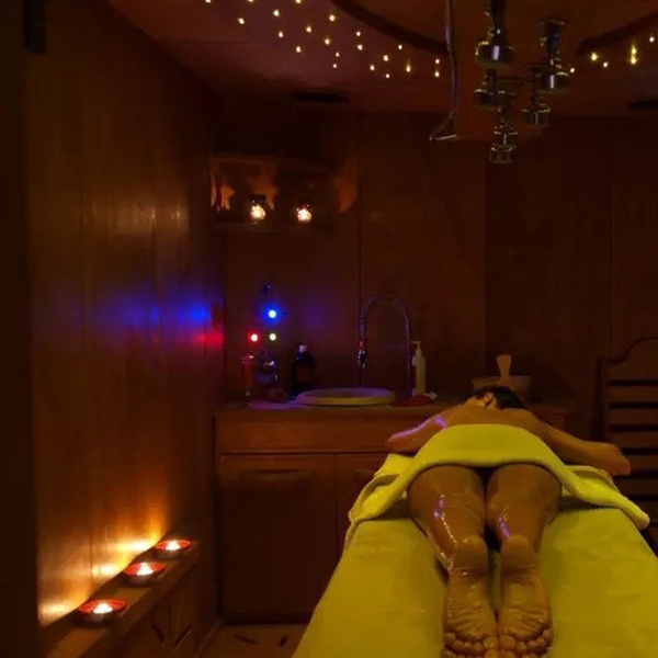 La otra opción ofrece un masaje corporal con aceites esenciales por todo el cuerpo de 25 minutos, acompañado de una copa de cava o vino.