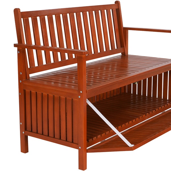- Banco de madera con espacio de almacenamiento debajo del asiento
