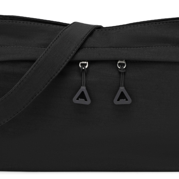 - Correa ajustable para el hombro fabricada con una combinación de material tejido, cómoda y resistente