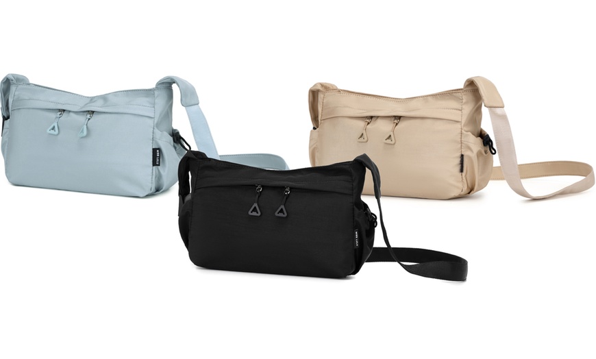 Con un diseño resistente al agua, esta bandolera ofrece diferentes bolsillos interiores y exteriores para que puedas organizar tus esenciales