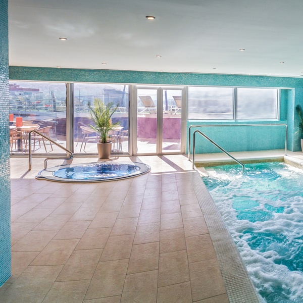 - Piscina interior climatizada con hamacas sumergidas, perfecta para relajar el cuerpo en un ambiente cálido.