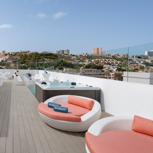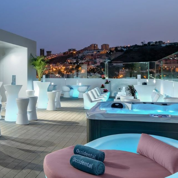 En la azotea del hotel Occidental Las Palmas se ubica el Stage Sky Bar & Lounge, una de las áreas más exclusivas del hotel. Durante el día se puede disfrutar de las vistas privilegiadas de 360º a la ciudad, para transformarse por la noche en una zona vibrante con música y un ambiente único. El Occidental Las Palmas es un hotel urbano vanguardista de 4* situado en el centro de la ciudad de Las Palmas de Gran Canaria, entre el parque Doramas y el Muelle Deportivo. Cuenta con 70 habitaciones que ofrecen todo tipo de comodidades y vistas al Océano Atlántico o al Jardín de Palmeras del parque Doramas.