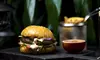 - Hamburguesa clásica de ternera: ternera picada preparada con especias del chef, lechuga iceberg, tomate, cebolla, pepinillos, queso cheddar y salsa casera de tomate, acompañada de patatas fritas