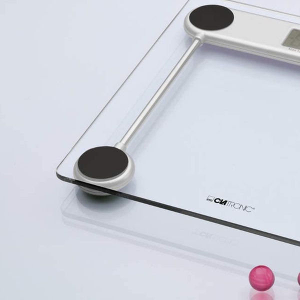 El diseño transparente de esta báscula es ideal para complementar cualquier decoración de baños y puede soportar hasta 150 kg