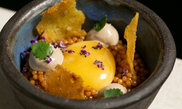 Lurra eta ortua...''La tierra y el huerto'': Yema de huevo de caserío sobre estofado de trigo