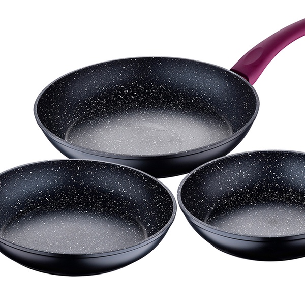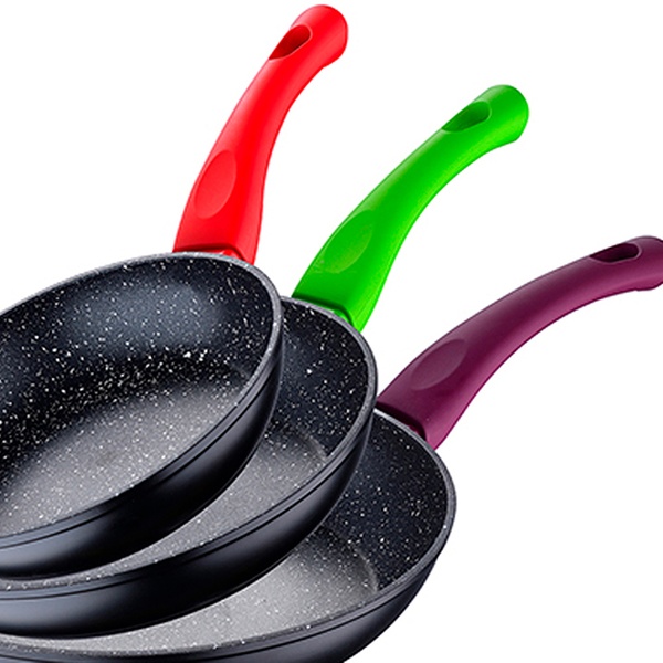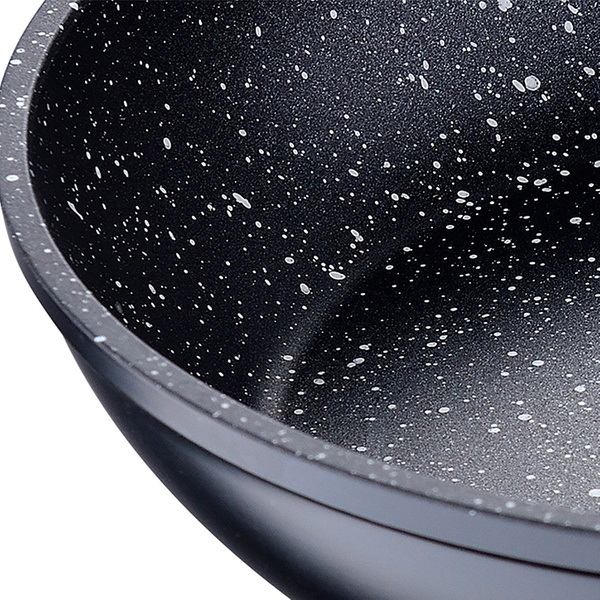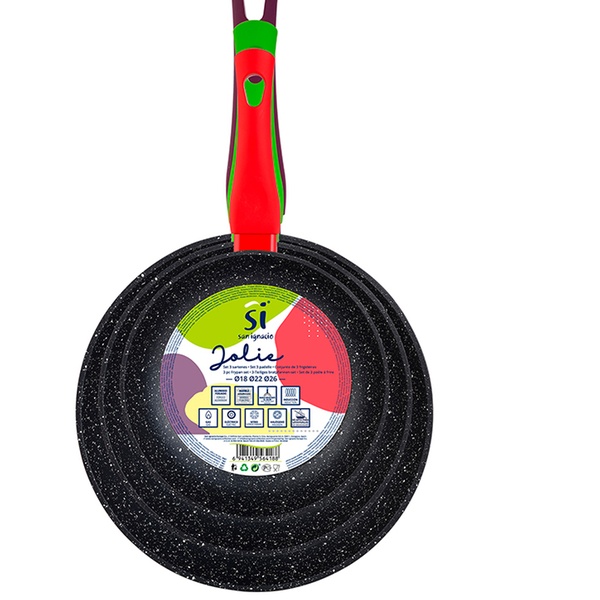 - El interior de las piezas tiene un antiadherente jaspeado que favorece una correcta cocción de los alimentos, evitando que se peguen a la base y facilitando la limpieza