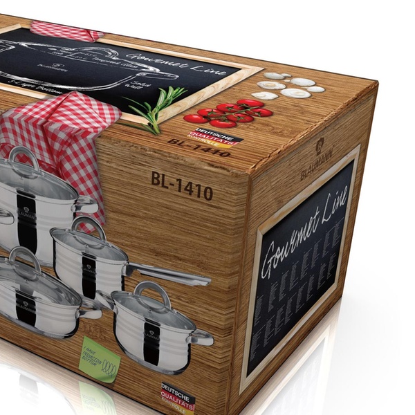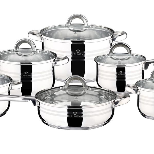 Batería de cocina de 12 piezas de la marca Blaumann fabricada en acero inoxidable apta para todo tipo de cocinas, incluyendo inducción
