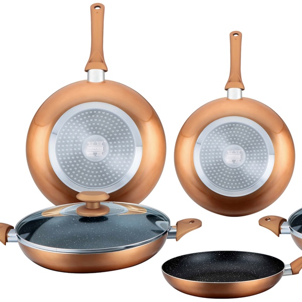- Material de las sartenes: aluminio prensado con fondo electromagnético