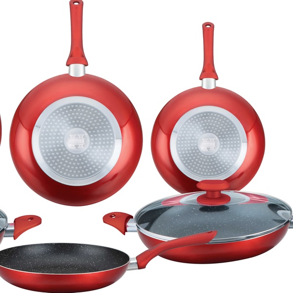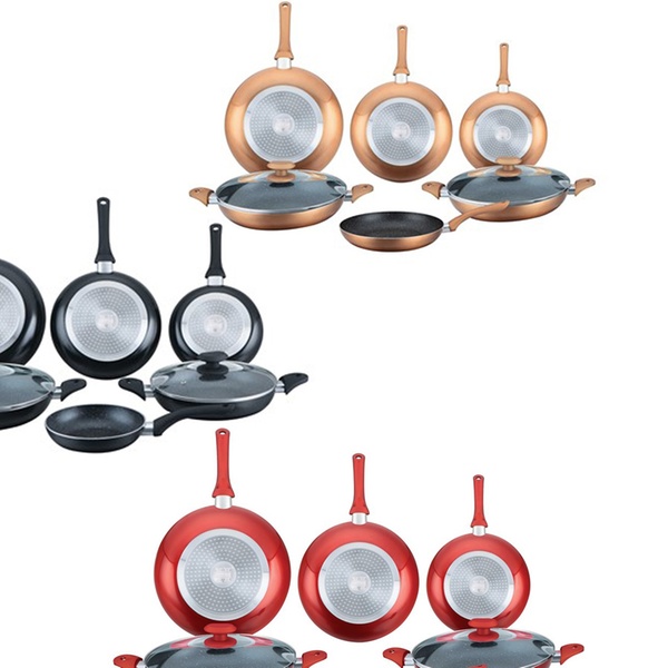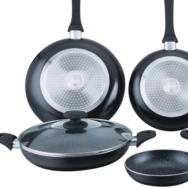 Esta batería de cocina Herzberg tiene un revestimiento antiadherente para conservar el sabor auténtico de la comida cocinada a la piedra