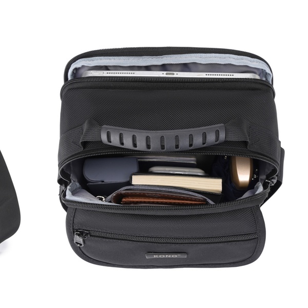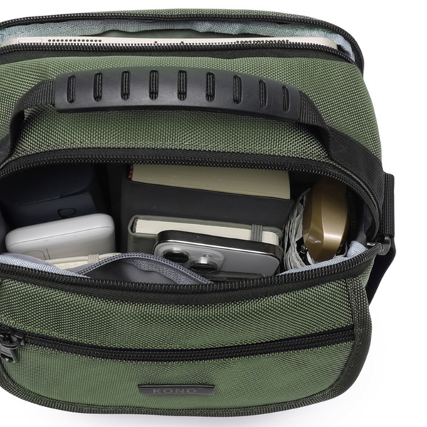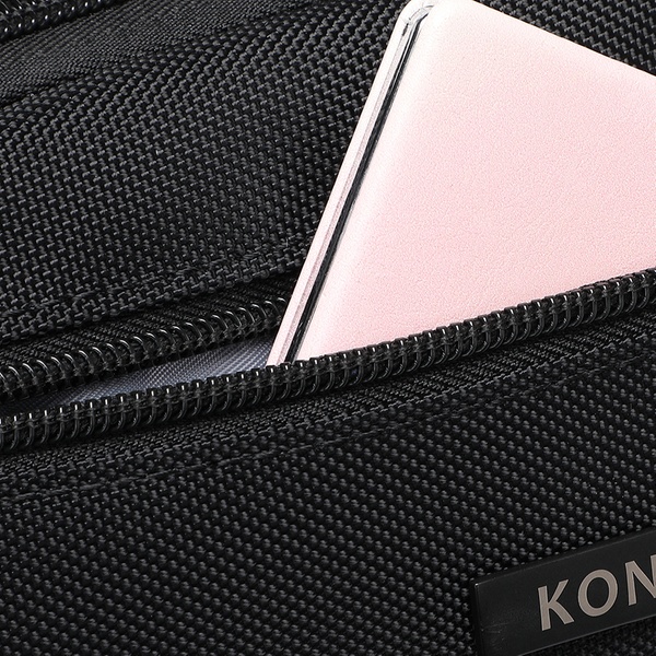 - Solapa con el logo de KONO y bolsillo con cremallera en la parte superior frontal