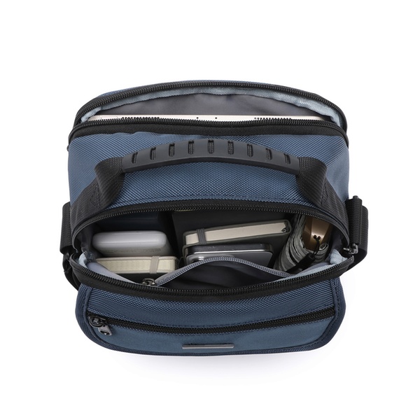 - Bajo la solapa, cuenta con un bolsillo abierto para objetos de acceso rápido