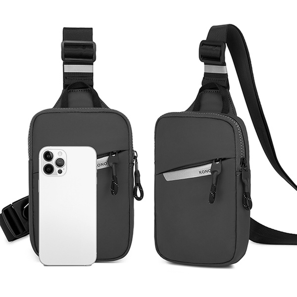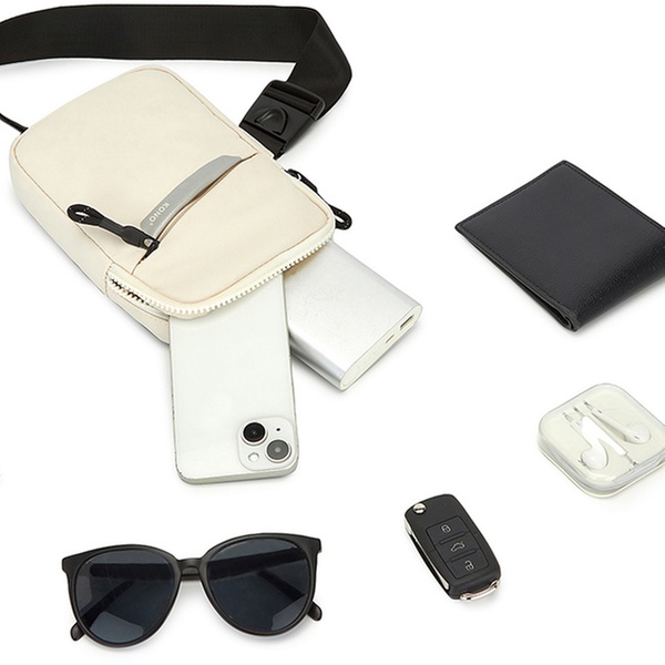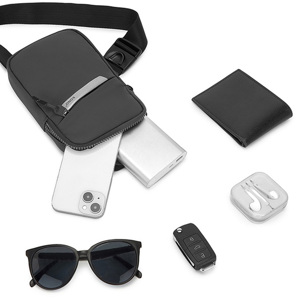- A pesar de su tamaño compacto, ofrece almacenamiento seguro para móviles, cartera, tarjetas de identificación/crédito y accesorios