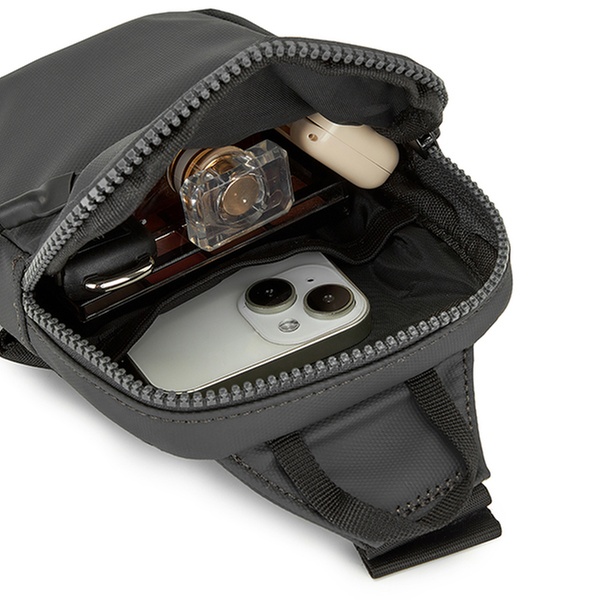 - Diseño funcional y estilizado con un look minimalista y un bolsillo frontal con cremallera diagonal para acceder rápidamente a llaves, tarjetas o monedas