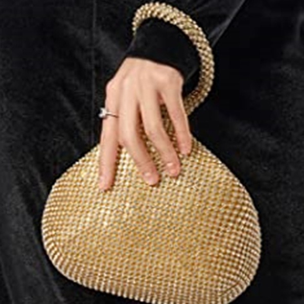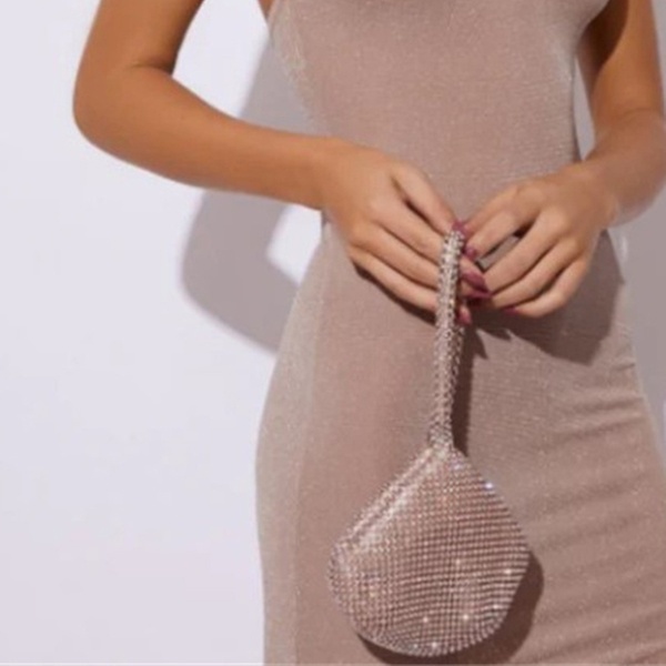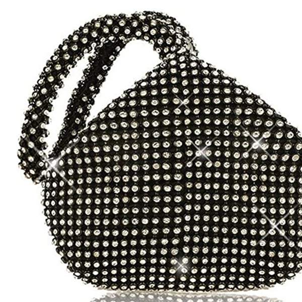 Decorado con pequeños cristales, este bolso de mano puede ser perfecto para combinar con joyas brillantes o complementar conjuntos de fiesta