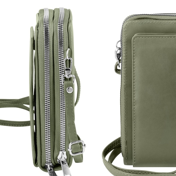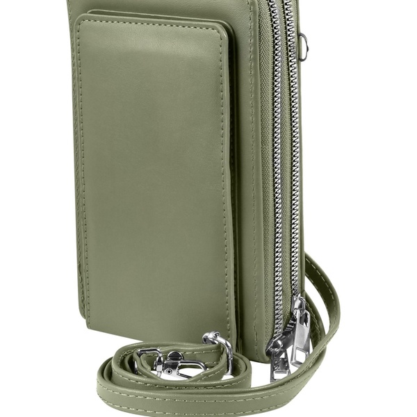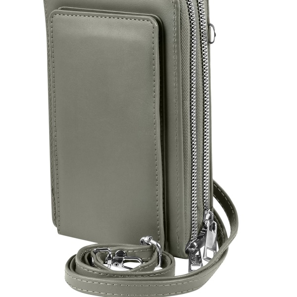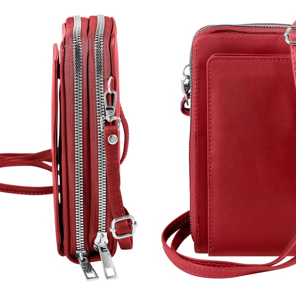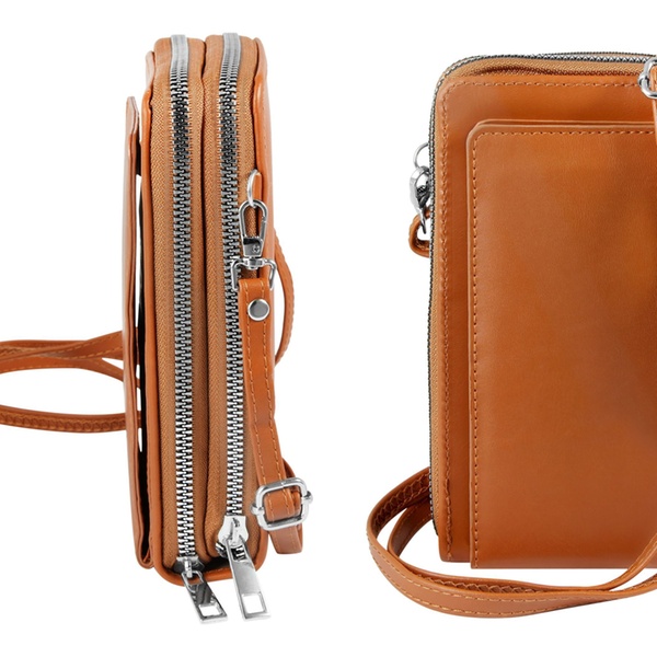 - Espacio suficiente para teléfono, tarjetas y efectivo