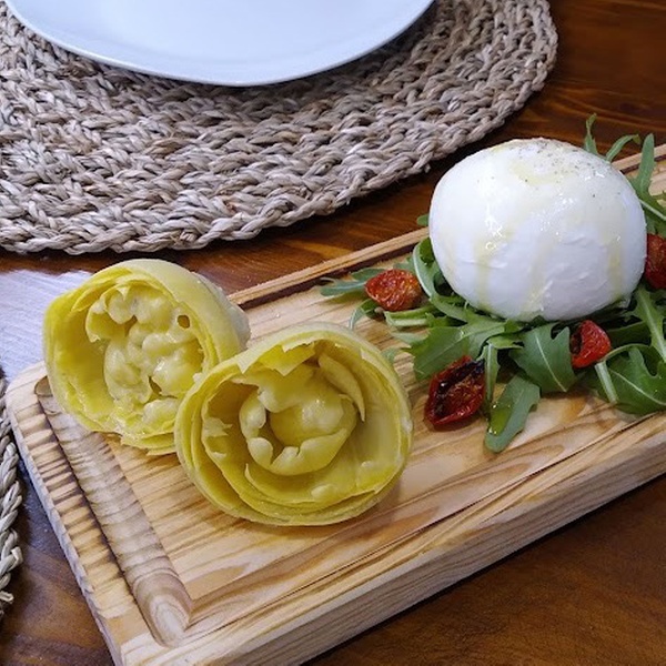 - Mortadela y pistacho: mozzarella, mortadela, pistacho y burrata