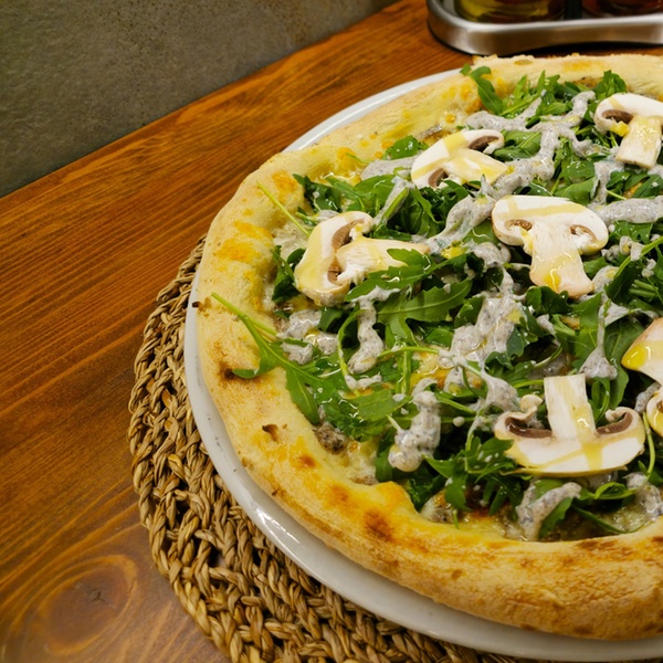- Trufa: crema de trufa, mozzarella, mix de setas, rúcula y Grana Padano
