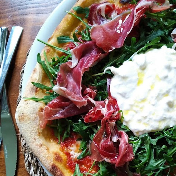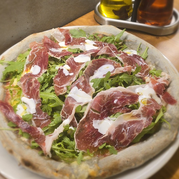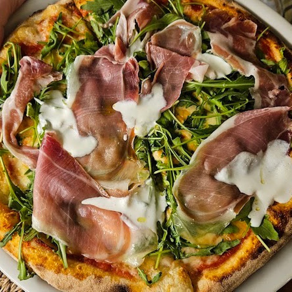 - Ibérica: salsa de tomate, mozzarella, jamón ibérico, rúcula y crema de burrata