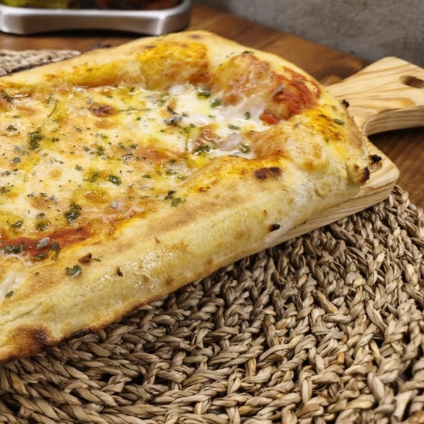 - Napolitana: salsa de tomate, mozzarella, anchoas, ajo, aceituna negra, alcaparra crujiente, albahaca y orégano
