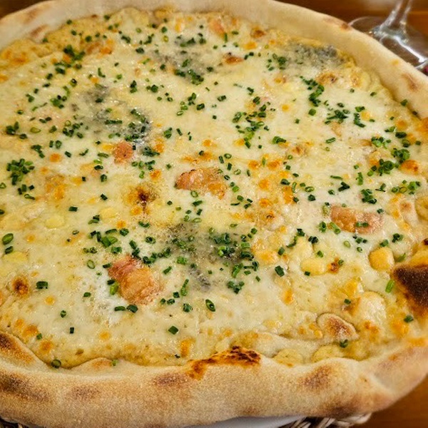 - Cinco quesos: crema de cebolla ahumada, mozzarella, queso azul, queso ahumado, queso brie, parmesano y cebollino