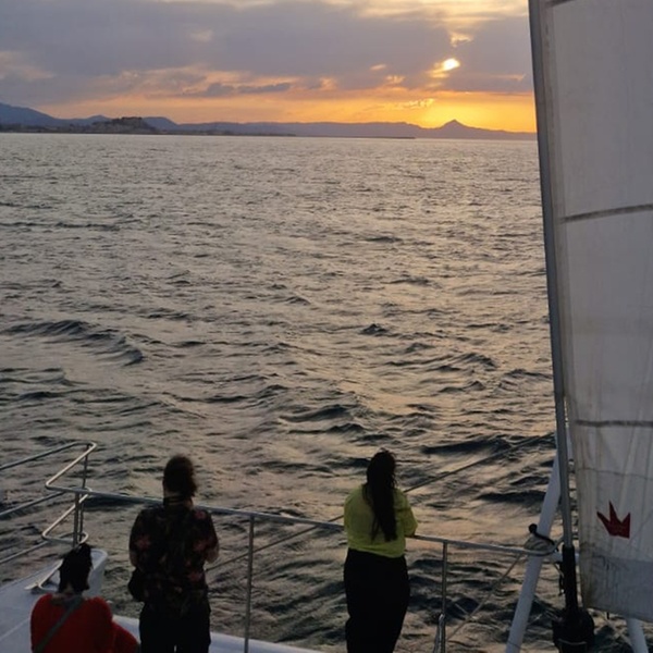 - Una excursión de 2 horas en catamarán al atardecer con cena y copa de cava para 1 adulto: un paseo relajante por la costa acompañado de una exquisita cena.