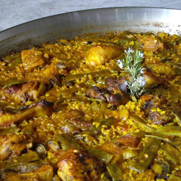 - Ensalada, paella valenciana o vegetal, y fruta fresca
