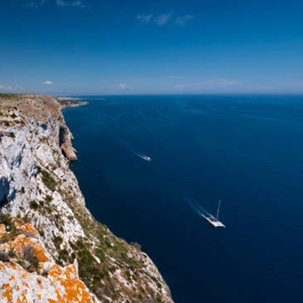 Zarpamos desde el puerto de Dénia, navegando por la costa de Las Rotas, donde podrás avistar la Reserva Natural Marina y la emblemática Cova Tallada desde el catamarán. Continuamos hacia el puerto de Jávea y la espectacular Cala Granadella, considerada la mejor cala de España por sus aguas turquesa y esmeralda.